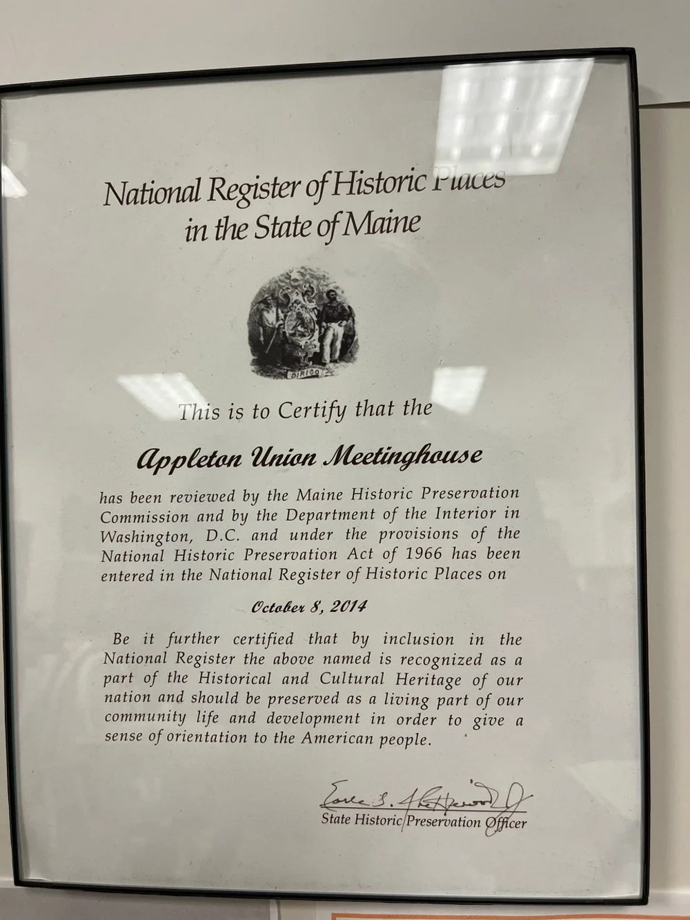 The Appleton Union Meeting House has been listed in the National Register of Historic Places as a locally significant example of a type of rural church architecture. The period of significance reflects the date, 1848, when the building was designed and erected.